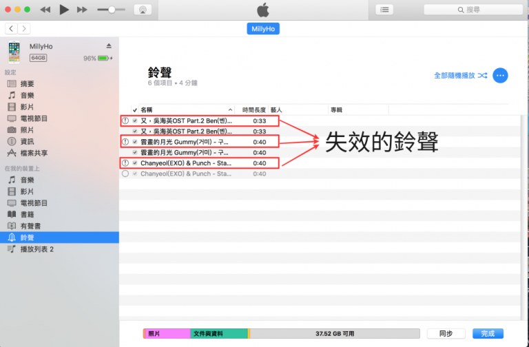 圖是Mac版,Windows的步驟差不多一樣((也有用過Windows電腦自製鈴聲