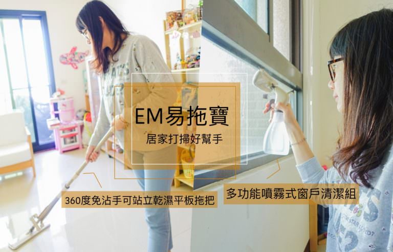 以上。居家》EasyMop易拖寶360度免沾手可站立乾濕平板拖把+多功能噴霧式窗戶清潔組。清潔打掃超easy(完)