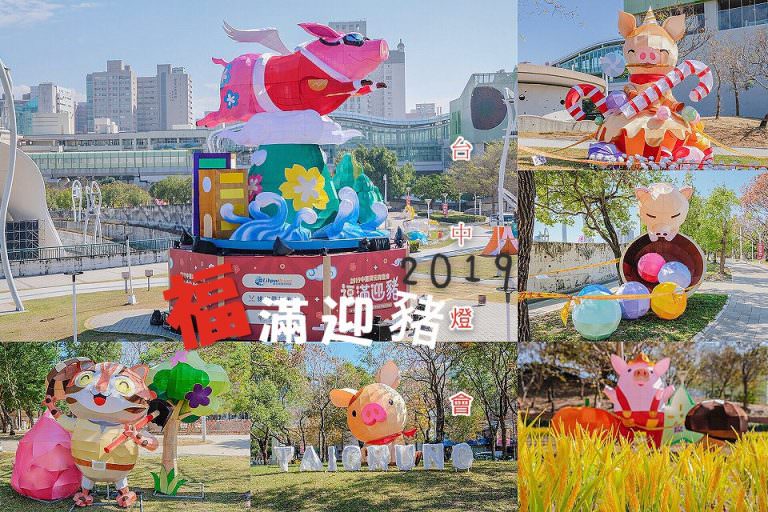 2019台中燈會裝飾搶先看│福滿迎豬。可愛的御天飛行豬~一飛衝天/免費送燈籠/停車資訊